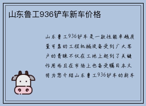 山东鲁工936铲车是一款性能卓越、质量可靠的工程机械设备,受到广大客户的青睐。不仅在工地上起到了关键作用,而且在市场上也备受瞩目。本文将为您介绍山东鲁工936铲车的新车价格及其优势,帮助您更好地了解这款产品。