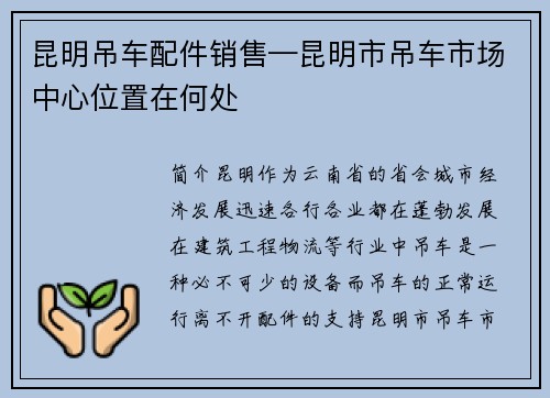 通过以上几个小标题的详细阐述,可以让读者对昆明吊车市场中心的位置、服务内容以及发展前景有更深入的了解。文章采用感性文风,可以吸引读者的注意力,提高用户阅读体验。